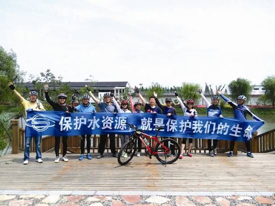 5月10日,包括公司员工在内的江阴市民骑行爱好者自发组织了“关注母亲河,爱护水资源”公益骑行活动,呼吁更多人关注水安全,保护长江水源地。图为ag游戏 澄西水厂。