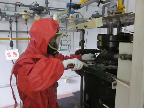 由于此次维护保养涉及到重大危险源,相关部门十分重视,提前制定了有针对性的保养计划,并对保养中的各个环节进行了细化分工。按照预定步骤,在经过抽真空装置吸收蒸发器管道中残余氯气、拆卸连接缸体外部管道和主体气缸、除锈气缸及连接管道、疏通缸体内部管道、更换部分老化零部件、重新整合缸体等一系列操作程序后,调试检测合格,运行正常。