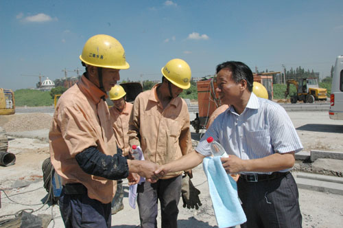 7月27日,市总工会副主席卞正环一行,来到延陵东路供水管线建设工地,走访慰问在高温下的一线施工人员,向他们发放了矿泉水、毛巾等消暑用品。卞正环对冒着酷暑、坚守岗位的水务人表示了由衷的敬意,同时要求注意调整作息时间,做好个人防护和防暑降温工作,确保人身、施工、供水安全。