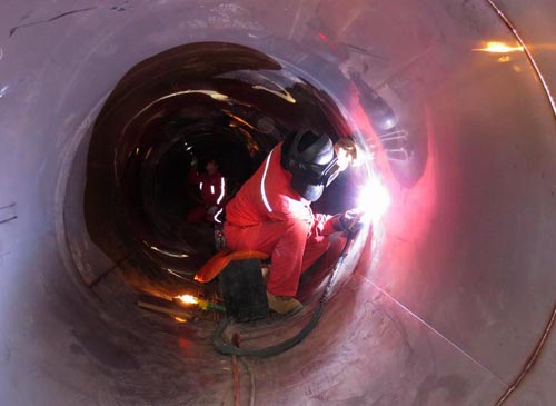 9月10日,改造工程正式开工。由于是公司首次采用不锈钢内衬技术,为确保工程质量和工期,公司与相关方进行及时沟通协调,科学合理安排,分段同时施工,对不锈钢焊缝实行抽样检测,严格按照规范试压管道。经过两个多月的奋战,管道改造工程按期完工,全线试压一次成功,正式通水。