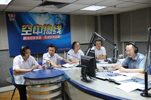 7月15日上午,公司总经理沙建新、副总经理吴耀东及相关部门负责人一行5人,来到江阴电台参加“空中热线”节目。