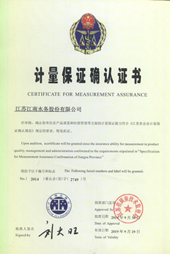 近日,公司顺利通过省计量保证确认体系复审,被江苏省质量技术监督局授予《计量保证确认证书》。