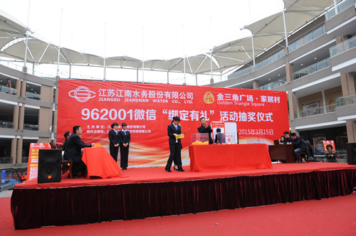 3月15日,在江阴市消费者协会、江阴市公证处的全程监督下,公司在金三角家居广场举行的962001微信“绑定有礼”抽奖活动圆满收官,从绑定公司微信账号的18813条居民用户记录中,共抽出特等奖10名、一等奖20名、二等奖30名、三等奖40名、幸运奖1000名,中奖率高达5.8%。