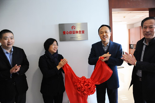 11月20日,无锡市总工会副主席王觉民一行到公司爱心母婴休息室指导工作,并与公司董事长龚国贤一起为爱心母婴休息室揭牌。爱心母婴休息室硬件设施齐全、管理规范,为孕期和哺乳期的女职工提供了温馨舒适的贴心服务。