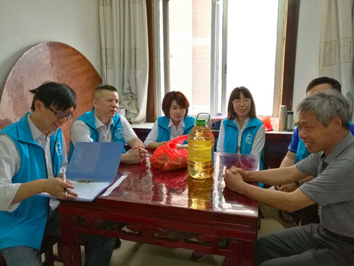 在公司副总经理陆庆喜和工会主席周益献的带领下,志愿者分成6个走访慰问小组,在社区工作人员的引导下,叩开社区居民家的门,与他们坐在一起拉家常,促膝谈心,认真听取并记录居民反映的情况和建议,并给他们送上刚刚包好的粽子和食用油。