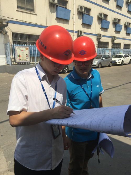 在我们的印象中设计所的员工应该是想象中的“白领范儿”,可事实并非如此,在农村,地形复杂,居民住宅无规则地分布在各个角落,设计员需要现场勘探测量,管道到哪,他们就走到哪,为了摸清用户的内部管道,钻进脏兮兮的鸡棚。在建筑工地,他们踩着脚手架,坐着临时电梯到几十层的工地楼顶;打着手电进入到黑暗的的地下室。他们忍受着高温“烤”验,汗水浸透衣衫,他们却依然坚守岗位,用汗水划出一道道“生命线”。