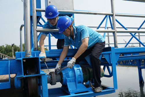 机电维修中心的高宽和梁恺骅,不惧高温,加大对供水设施的巡查和监管力度,对重点供水设备进行排查,不放过任何一颗螺丝,全力确保设施设备的良性运行。