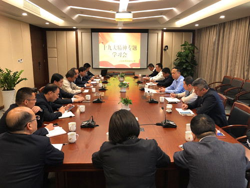10月27日下午,公司党委召开中心组专题学习会,学习贯彻党的十九大精神,公司党委委员和各党支部书记参加学习,公司党委书记、董事长龚国贤主持学习会并领学十九大报告精神。