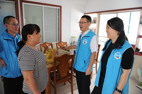 随后,在社区志愿者的陪同下,“小水滴”来到贫困结对居民家中为他们送去了粮油、粽子和鸭蛋,详细询问了他们的身体状况,并嘱咐他们有困难要及时反映,同时鼓励他们要勇敢面对生活,树立生活信心,祝愿他们过一个快乐祥和的端午节。