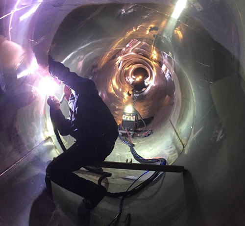 经多次现场勘查及方案论证,公司决定采用非开挖内衬修复技术对原管道进行改造,用“点上开挖”代替了“全线开挖”,减少对公园绿化及出行的影响,同时能够大幅缩短工期,降低施工成本。施工过程中“管道电动运输车”及“管道对装固定器”的应用大大降低了人工运送管坯的安全隐患,提高了内衬管道与原管道的贴合精度,以及工程施工的安全性、效率和质量。两件“神器”均由公司自主研发,于2016年6月相继获得实用新型专利证书。