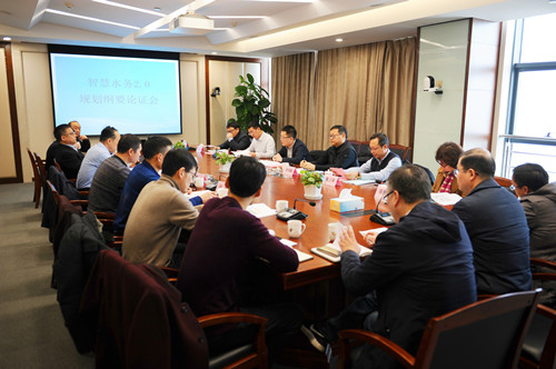 智慧水务2.0规划大纲》论证会在公司业务大楼1208会议室召开。会议邀请哈尔滨工业大学环境学院副院长南军,江苏省城镇供水保障中心主任林国峰,原国防科大网络所研究员陈晓梅,苏州清源华衍水务有限公司副总经理魏占锋,江阴市工业和信息化局副局长、大数据局局长刘建军,华北市政设计研究院智慧水务分院院长王浩正,天合光能有限公司智能制造IT经理顾志峰7位专家对《大纲》进行了论证。公司领导龚国贤、华锋、曾武、吴耀东及相关负责人参加会议,论证会由曾武主持。