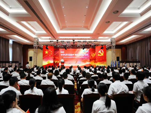 会议举行了“小水滴”突击队授旗仪式,表彰了优秀党务工作者、优秀共产党员、优秀党支部、工会工作积极分子、优秀共青团员、优秀志愿者等先进典型,重温了入党誓词,展示了员工自编自导自演的以庆祝建党100周年为主题的歌舞、朗诵、音乐快板、情景剧等节目。