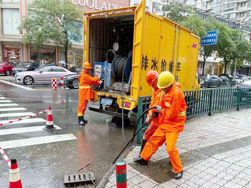 第一时间启动应急预案,以雨情为令,迅速行动。为确保排水畅通,工作人员清理积水路段垃圾,清掏排水口杂物,打开井盖加快水流排空速度。共计出动防汛应急人员744人次,累计有效处置积水点85个,完成积水点排水改造54处,确保了平稳度汛。
